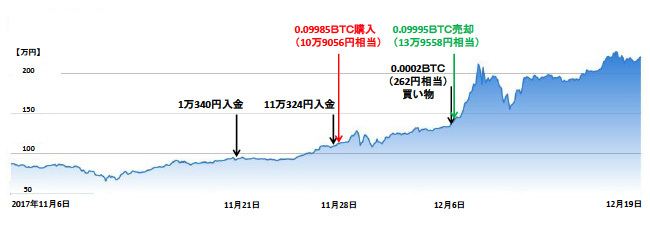 そこからというもの、日に何度もアプリで価格をチェック。思ったほどの乱高下はないが、上下する理由が分からないのでなぜかハラハラする。11月29日の午前3時には北朝鮮がミサイルを発射したが、目立った値動きはなく、時事ニュースによる影響はあまりないような印象を受けた。