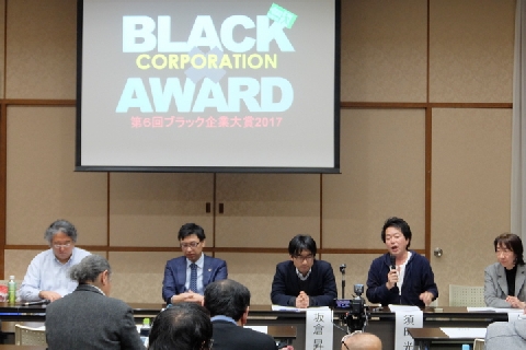 労働運動活動家の河添誠さんは、「ブラック企業大賞のノミネートは、社会の中にあるひどい企業のごく一部だ。職場で声をあげたり、労災になって当然の事案でも認定されたり、報道されたりした中から、特にひどいものをノミネートしているにすぎない。日本は、労働被害・人権侵害が隠された社会だ」と指摘した。